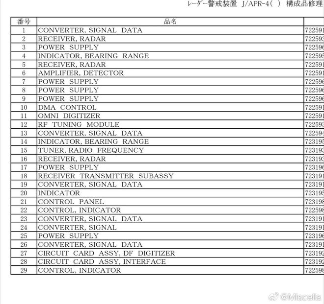 F-15J从C-1到C-7生产批次安装J/APR-4,C-8到C-13批次更换为改进型J/APR-4A。C8服役开始自1990年,按时间点推算结合网络公开的配件维修表格,推断4A型为扫频超外差加IFM瞬时测频体制。IFM瞬时测频是上世纪80年代重点发展的一种高性能(当时)接收机技术,美海军舰载AN/SLQ-32(V)电子战接收机即采用该体制。