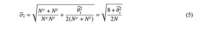 关于 μ 的区间估计,替代性的 HKSJ 方法(有时也称为“Knapp–Hartung”方法)解决了 Wald 区间的局限性。¹³,¹⁴ 该方法更灵活地假设 μ̂ 服从 t 分布,并额外对 Var(μ̂) 进行重新缩放,以考虑权重 wᵢ 中 τ² 的估计影响: